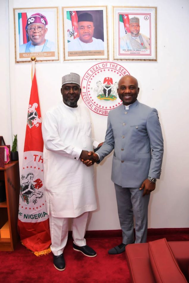 The Honourable Minister of Innovation, Science, and Technology, Dr.Kingsley Udeh, SAN accompanied by the Permanent Secretary, Mr. Philip Ndiomu paid an official familiarization visit to the Chairman, Senate Committee on Science and Technology, Distinguished Senator Aminu Iya Abbas.