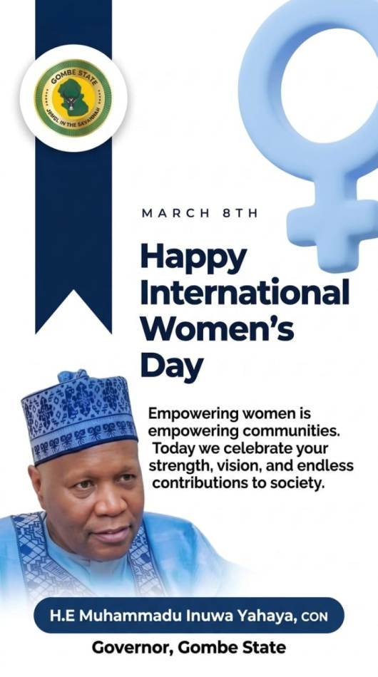 In a message to commemorate the 2026 International Women’s Day, Governor Inuwa Yahaya said the occasion provides an opportunity to celebrate the invaluable contributions of women to society, as well as to reflect on the challenges they continue to face and to strengthen efforts toward addressing them.