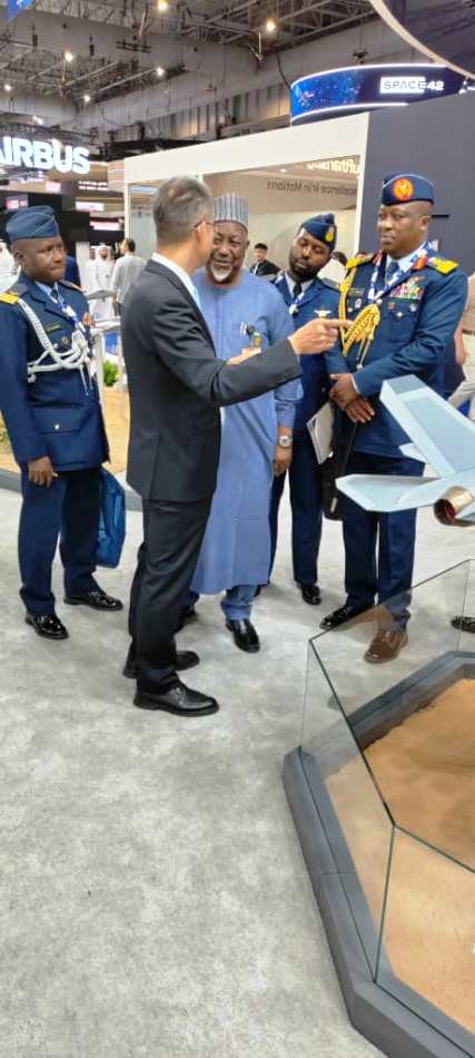 The Honourable Minister of Defence H. E. Mohammed Badaru Abubakar CON, mni, attended the opening day of the Dubai Airshow 2025, alongside Air Vice Marshal AY Abdullahi, the representative of the Chief of the Air Staff.