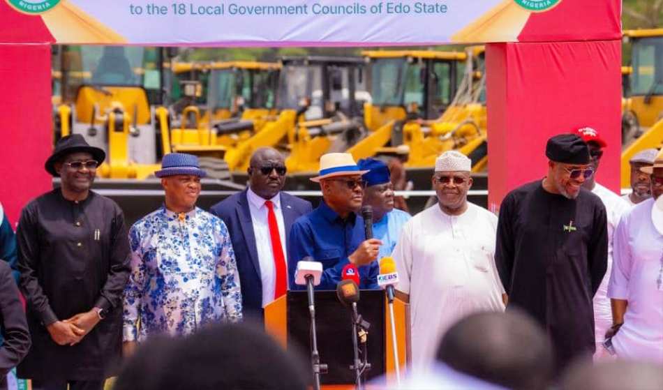 FIC Report (Edo State) – The Minister of the Federal Capital Territory, Nyesom Wike, has commissioned 54 pieces of construction equipment supplied by the Edo State Government for use across the state’s 18 Local Government Areas. Wike described the initiative as a significant step toward enhancing rural economic growth and infrastructure.